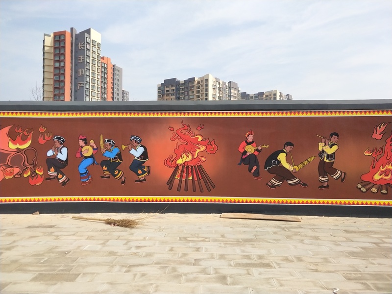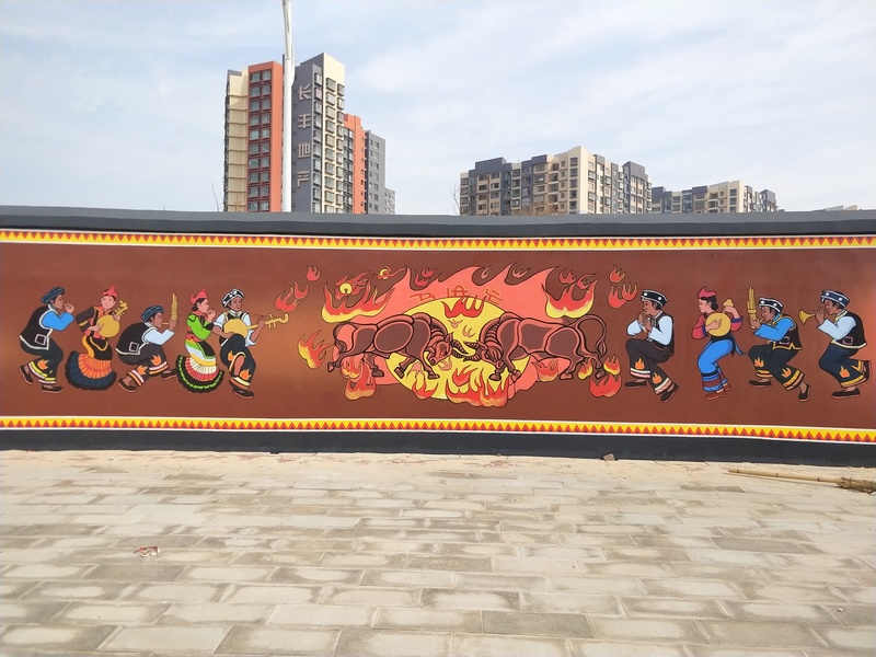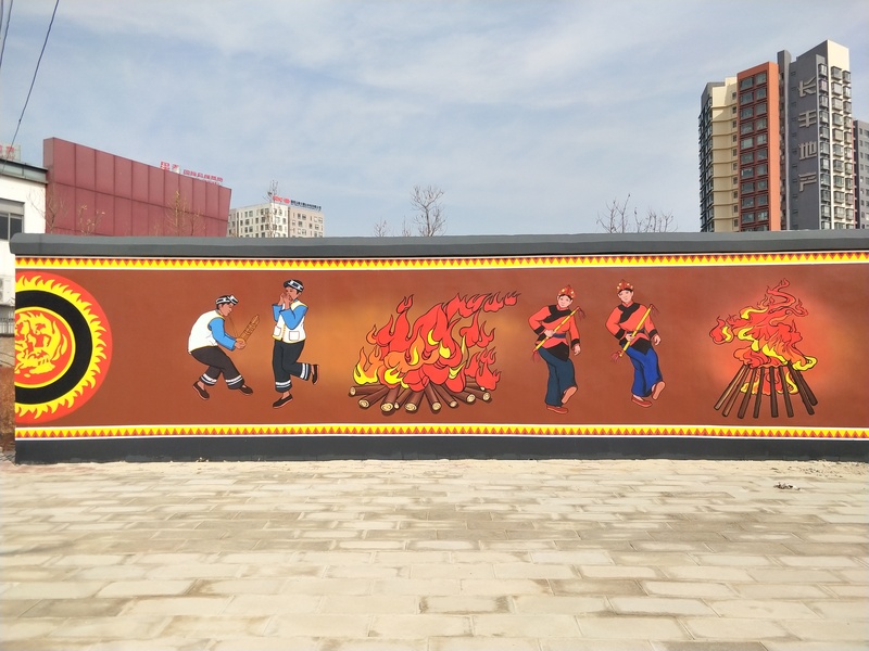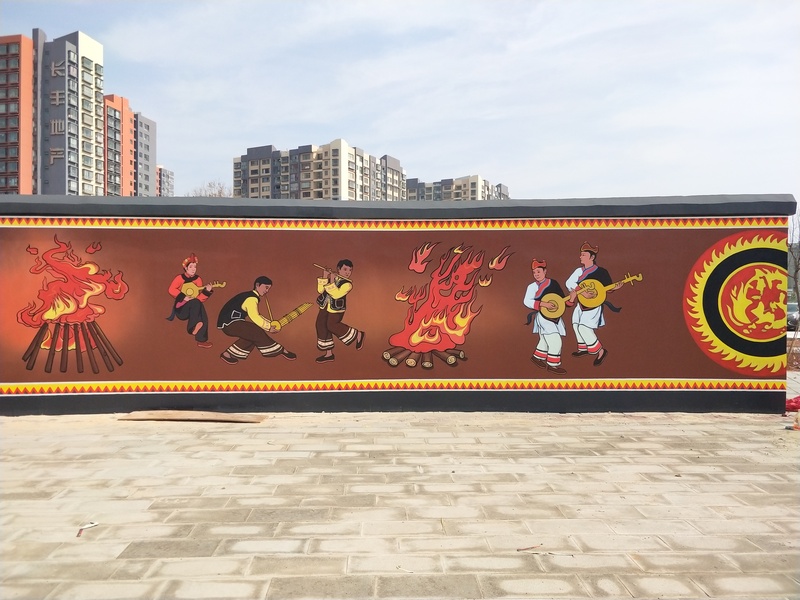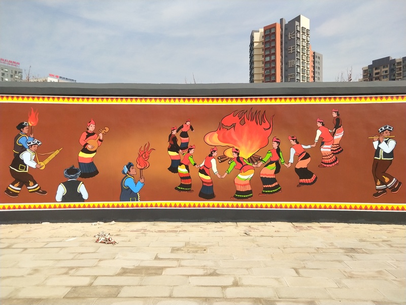 云南彝族节庆壁画民族文化传统节日墙面彩绘