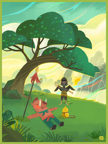 插画小习作:巡路森林