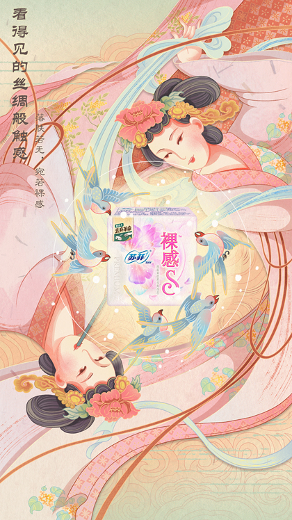 《风花雪月夜》系列(风系)美妆产品包装插画