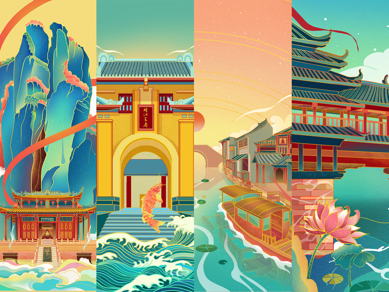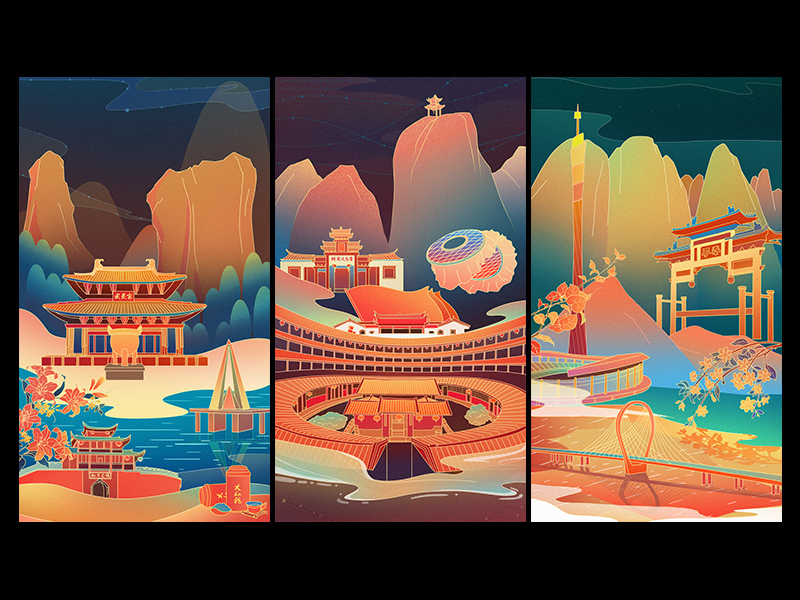 毕业设计 国潮城市插画