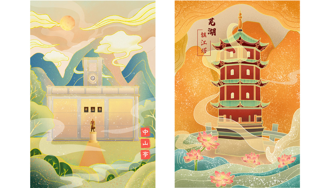 芜湖十景插画设计