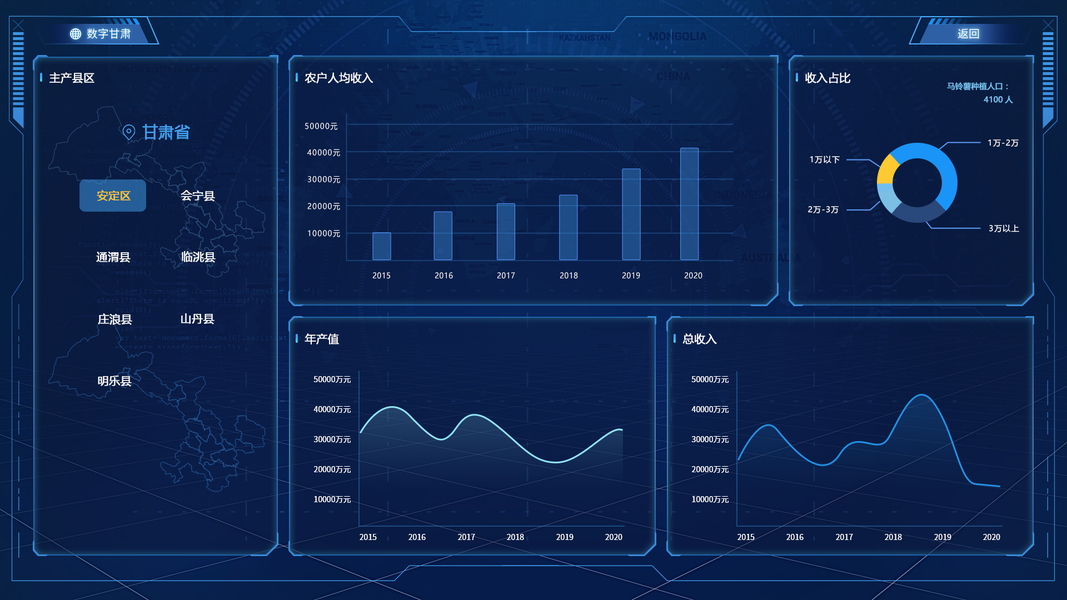 定西县农产品马铃薯产业数字化平台 大屏可视化