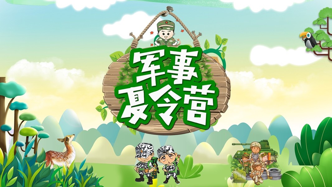 快乐卡通暑假军事夏令营活动策划PPT模板
