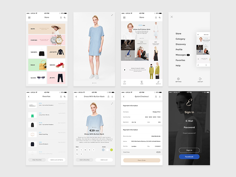 国外时尚在线服饰鞋帽箱包电子商城购物APP界面UI设计