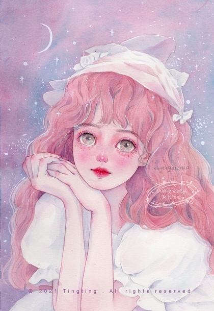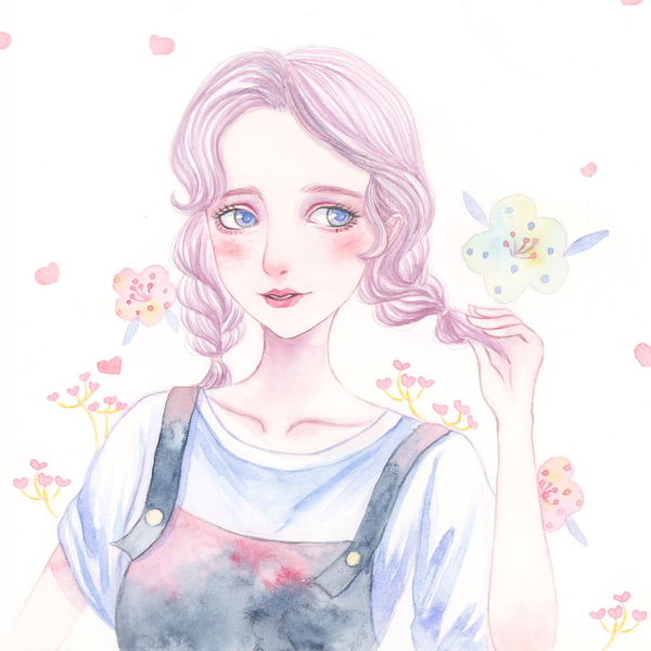 水彩少女头像水彩手绘插画水彩教程森系壁纸卡通治愈系