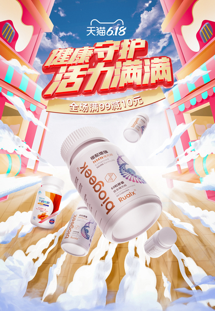 立体瓶装c4d电商产品精修设计-《软骨素瓶装益生菌》