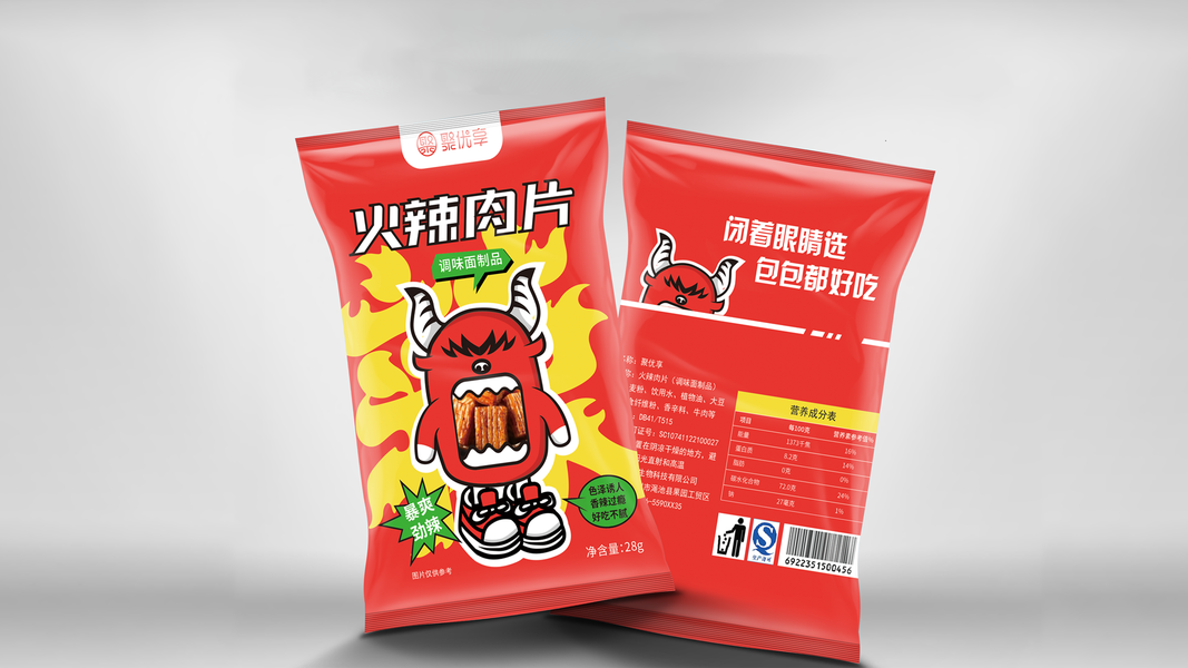 “火辣肉片”辣条产品的包装提案(袋装、桶装、盒装)