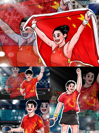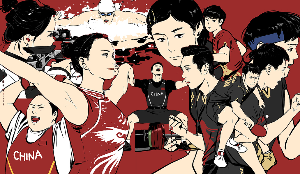 人民网|中国军团奥运夺金水墨长图