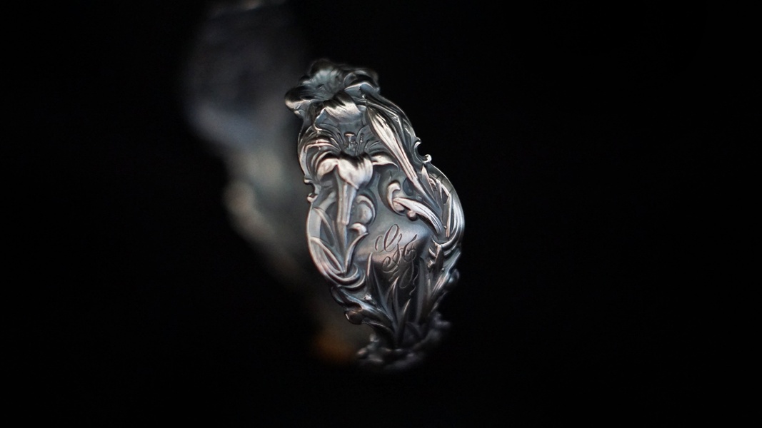 【百合花古董银勺Vintage中古手镯】