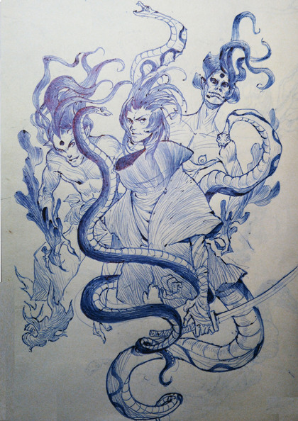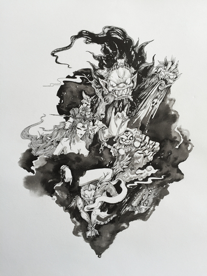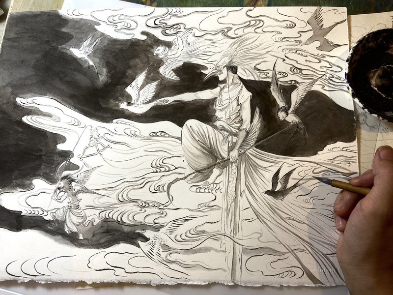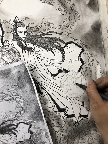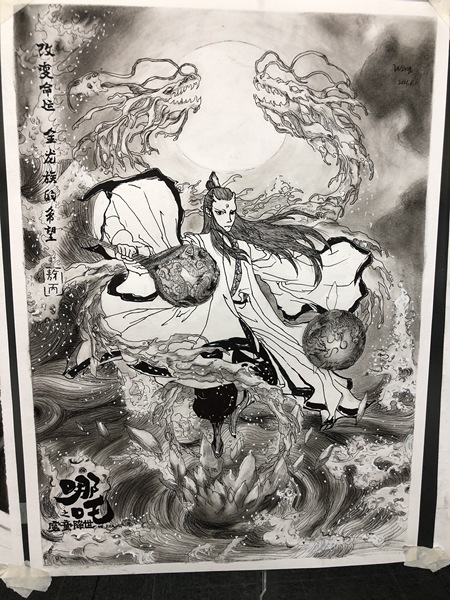 手绘素描速写,哪吒之 敖丙 海报临摹黑白
