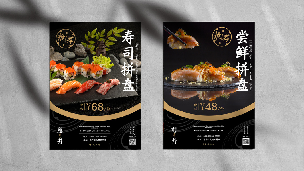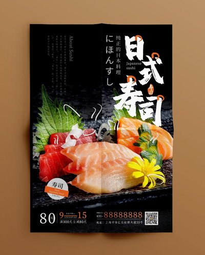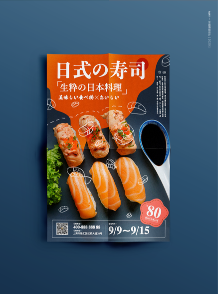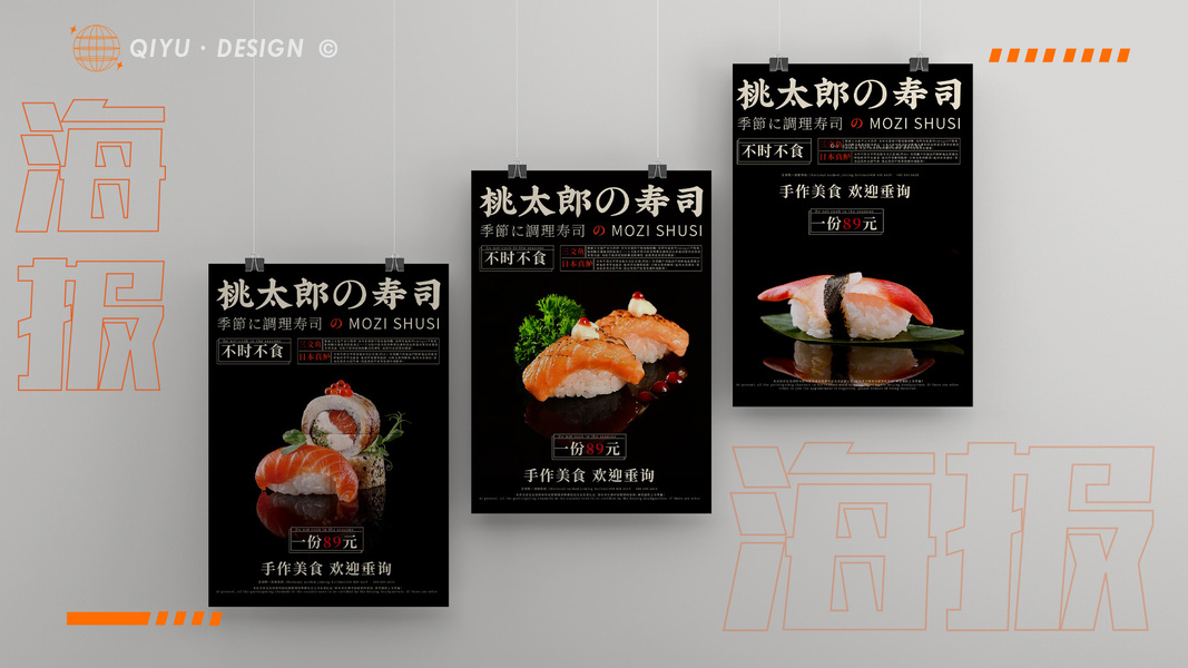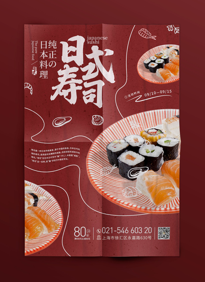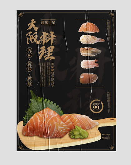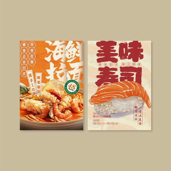 餐饮、食品夏日抹茶冰淇淋、寿司、啤酒海报