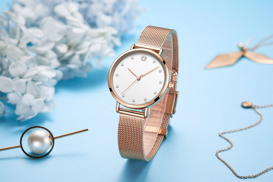 手表摄影/NESUN尼尚机械表心型镂空防水夜光镶钻女表