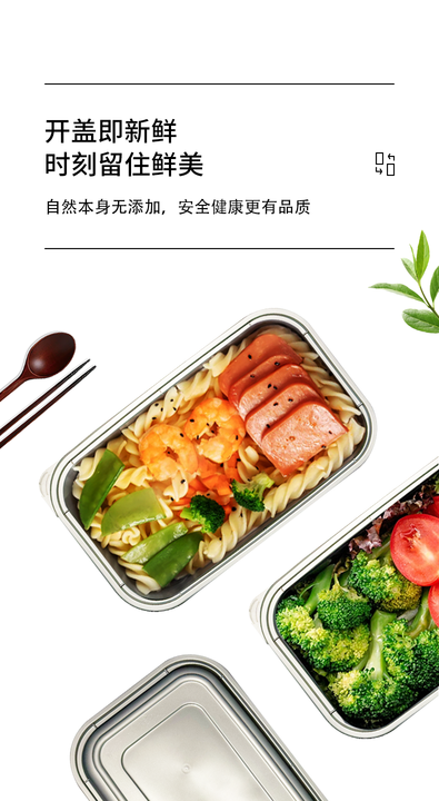 一次性餐盒电商详情页设计(高档方形银色餐盒)