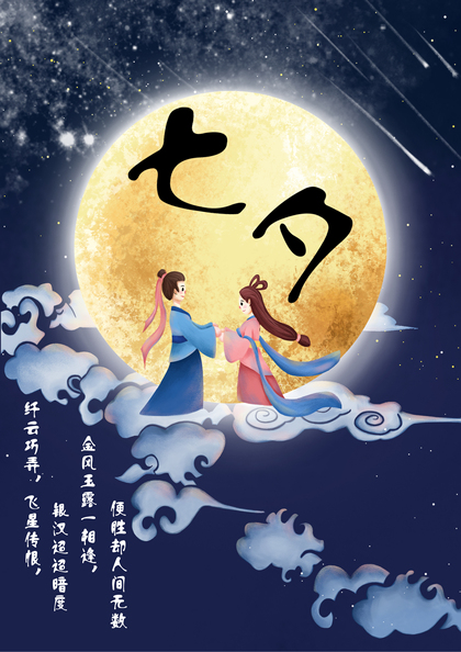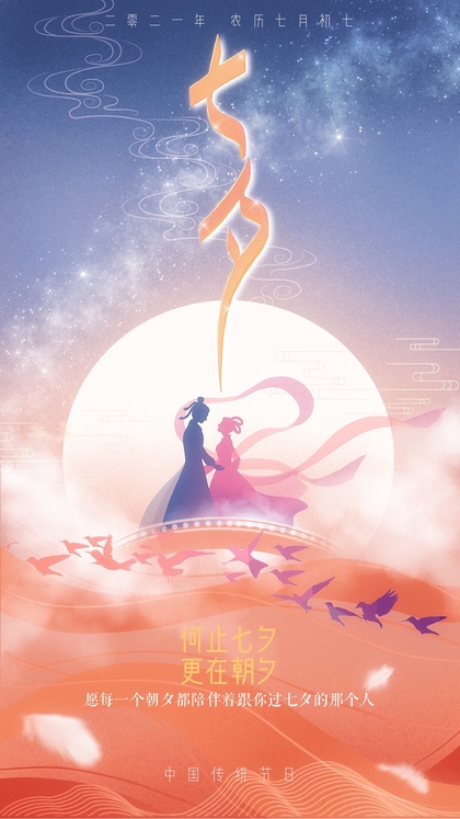中国古风七夕节历史文化介绍主题课件PPT模板