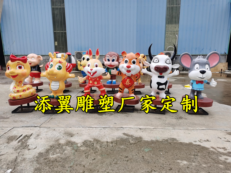 记录十二生肖主题广场玻璃钢卡通动物雕塑做个短途旅行