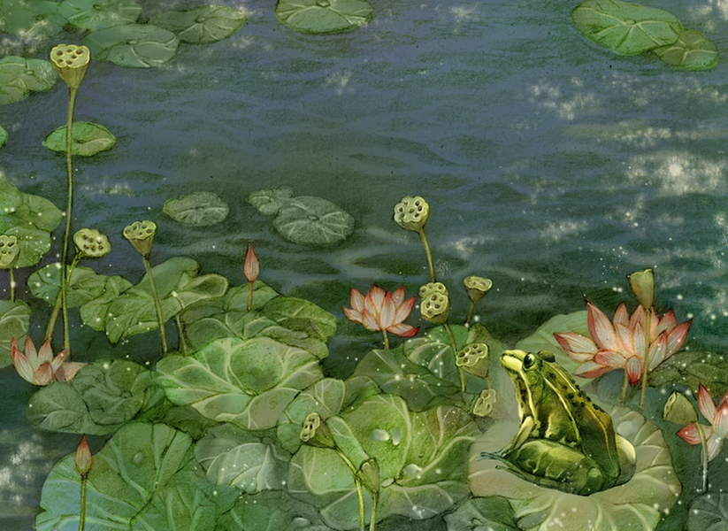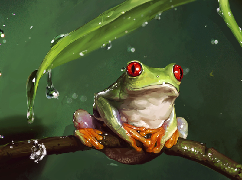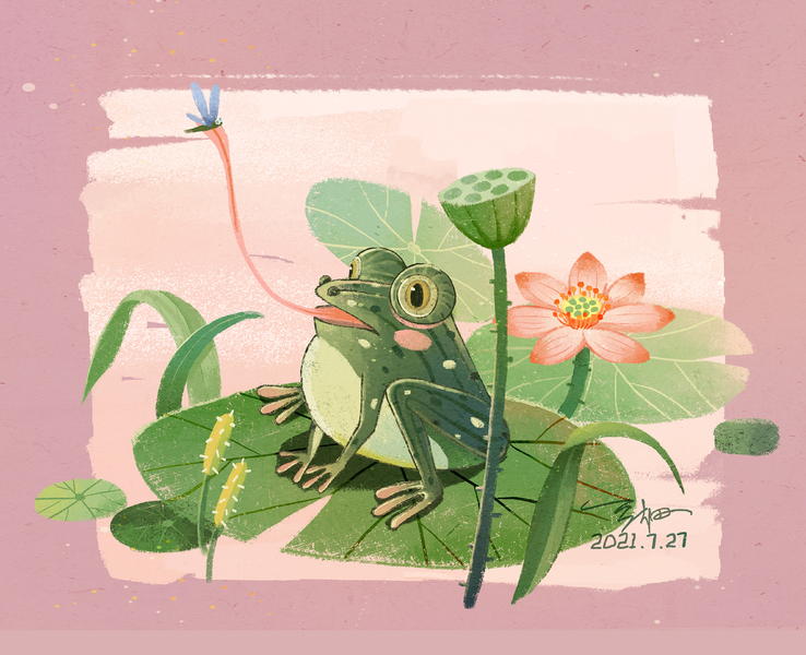 试着用水粉颜料练习个青蛙呱,哈哈哈,但画法还是水彩的画法