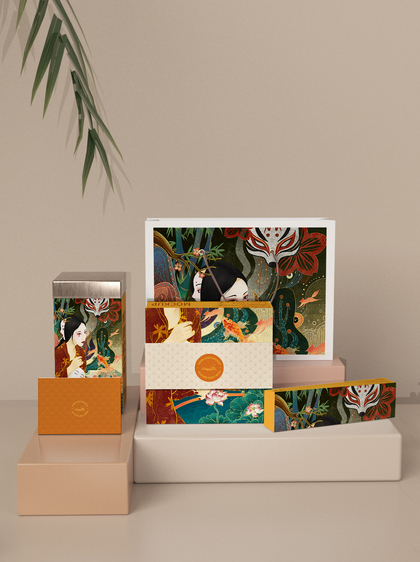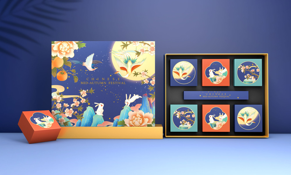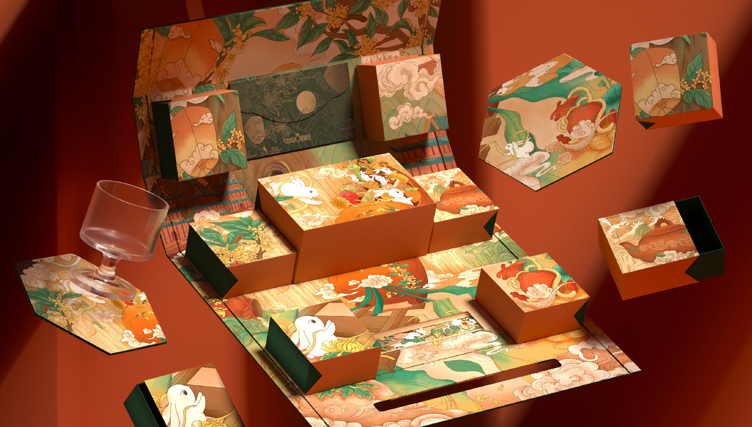 橘猫设计x中秋月夜花朝礼盒包装设计手绘国潮风插画