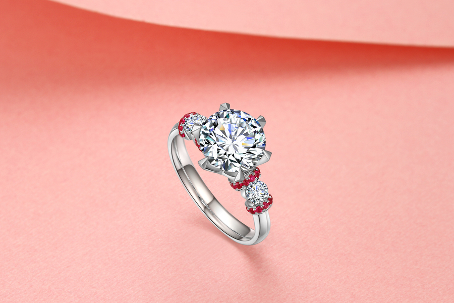珠宝拍摄修图 莫桑石莫桑钻戒指 旧图 日常白底场景图