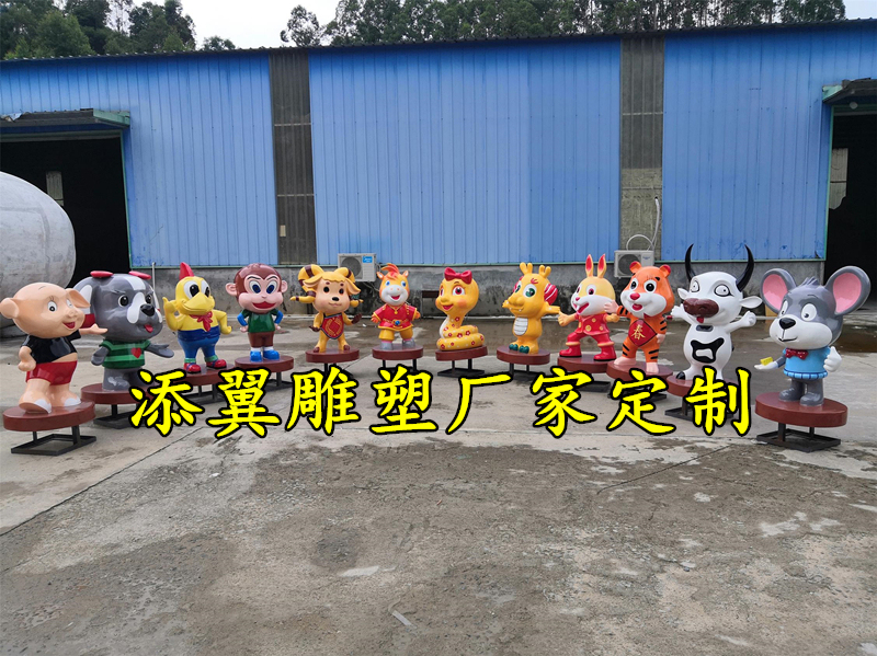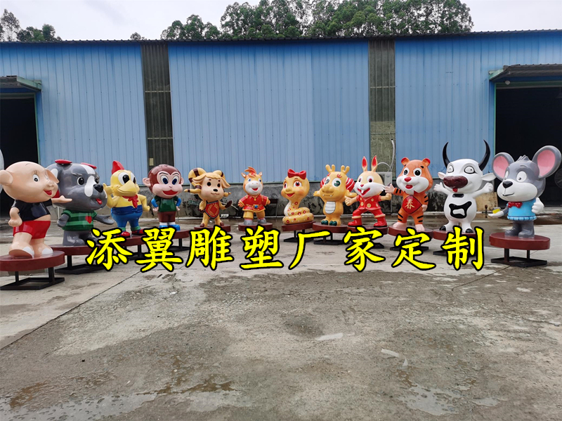记录十二生肖主题广场玻璃钢卡通动物雕塑做个短途旅行