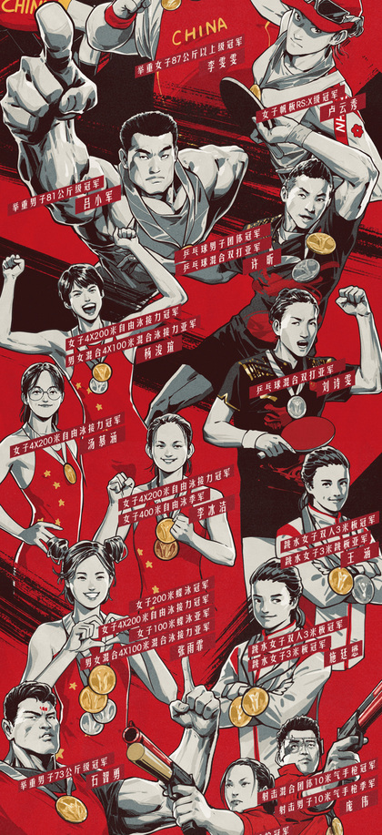 腾讯2024巴黎奥运会插画海报 美漫写实卡通漫画壁