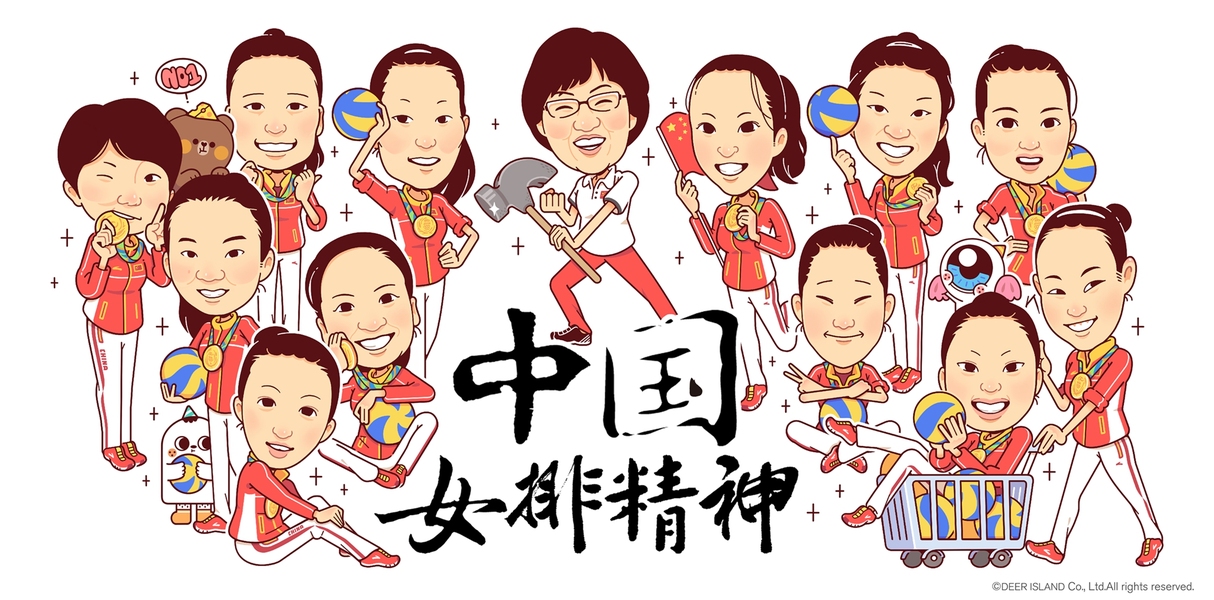 白象中国面 女子三大球国家队插画 女排女篮女足 写实