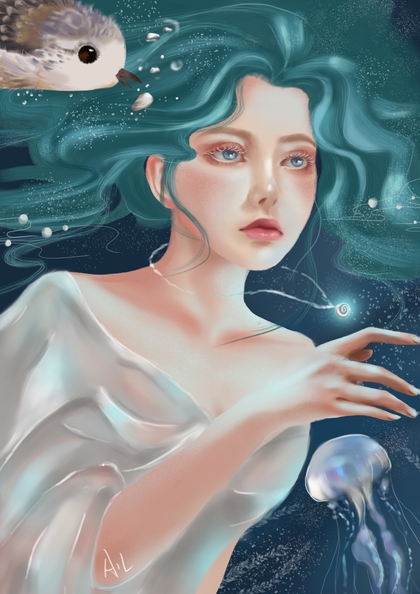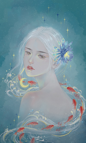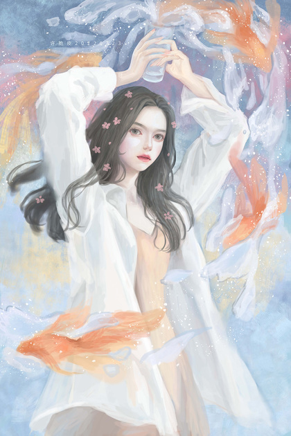 近期习作三幅《奥菲利亚》《pantone粉+蓝》《火星救援》