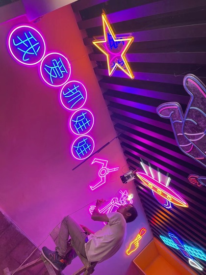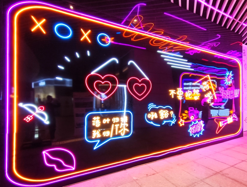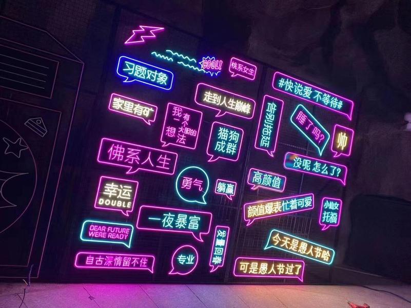 网红墙商业街美食街夜市灯光美陈霓虹灯造型定制