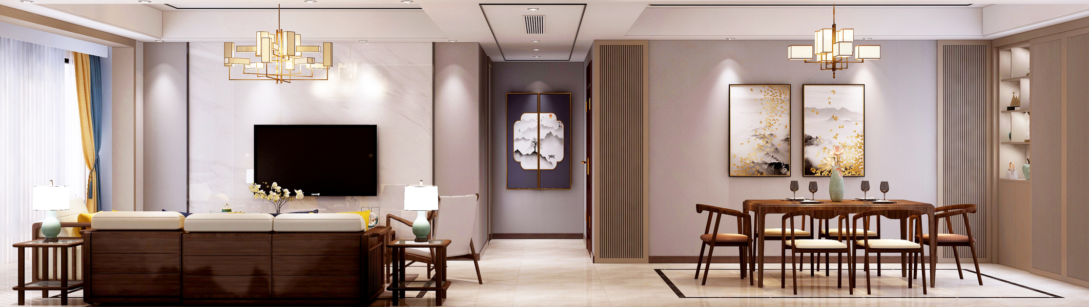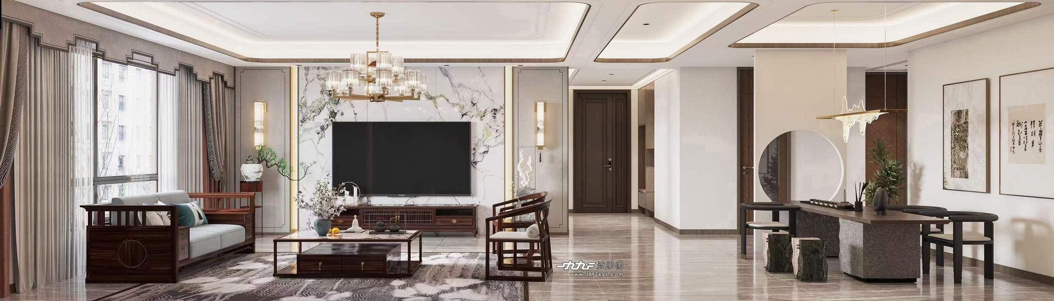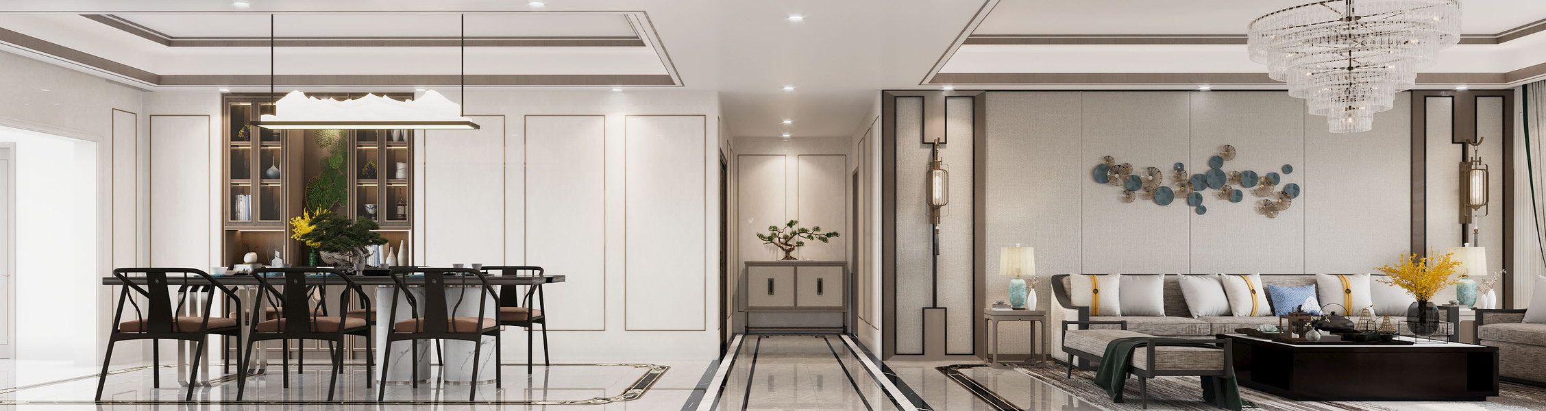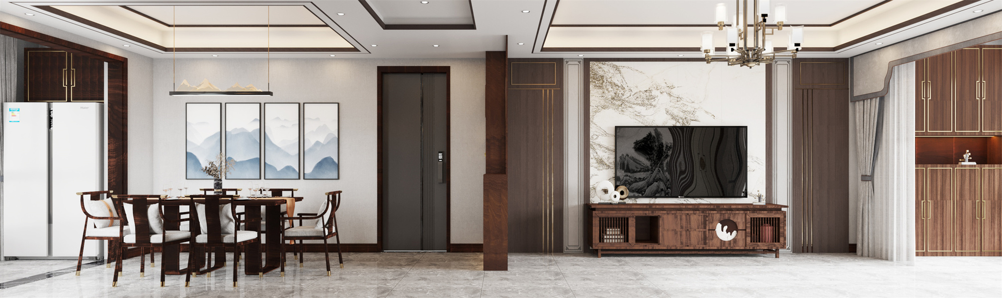 新中风格客餐厅—白龙马效果图