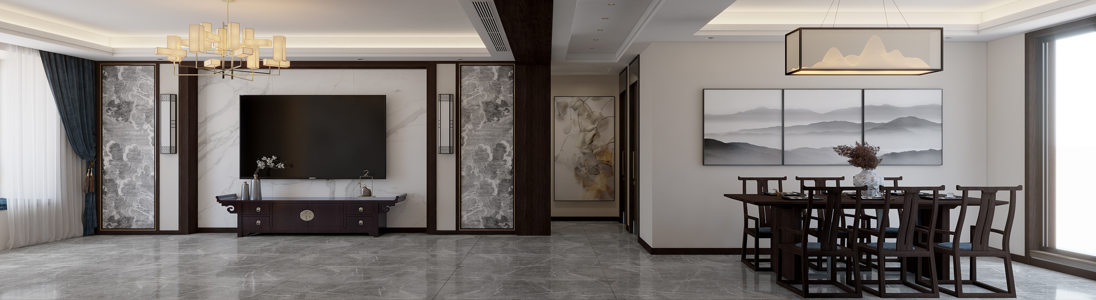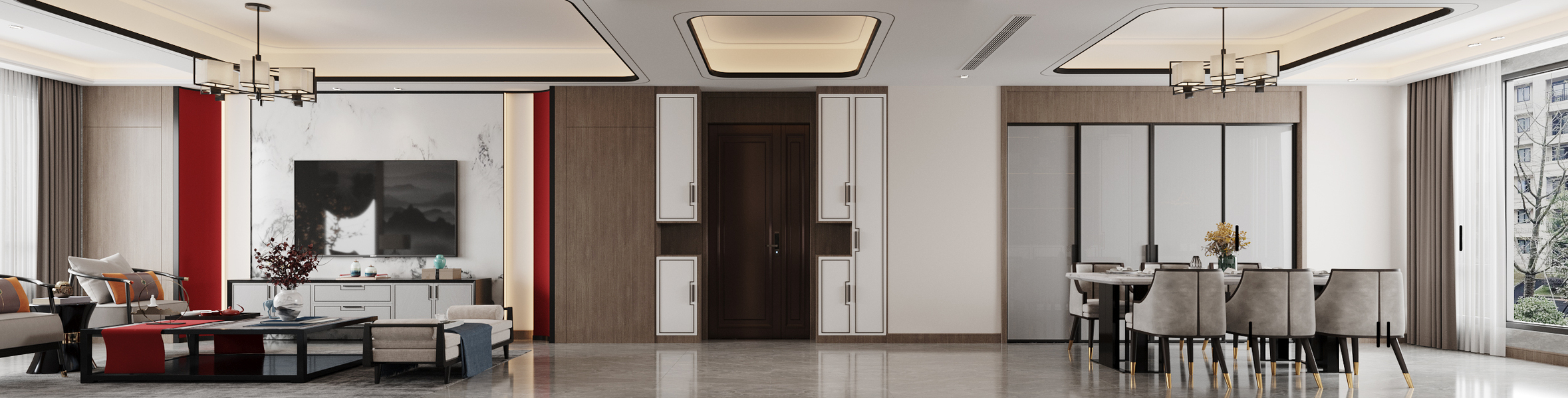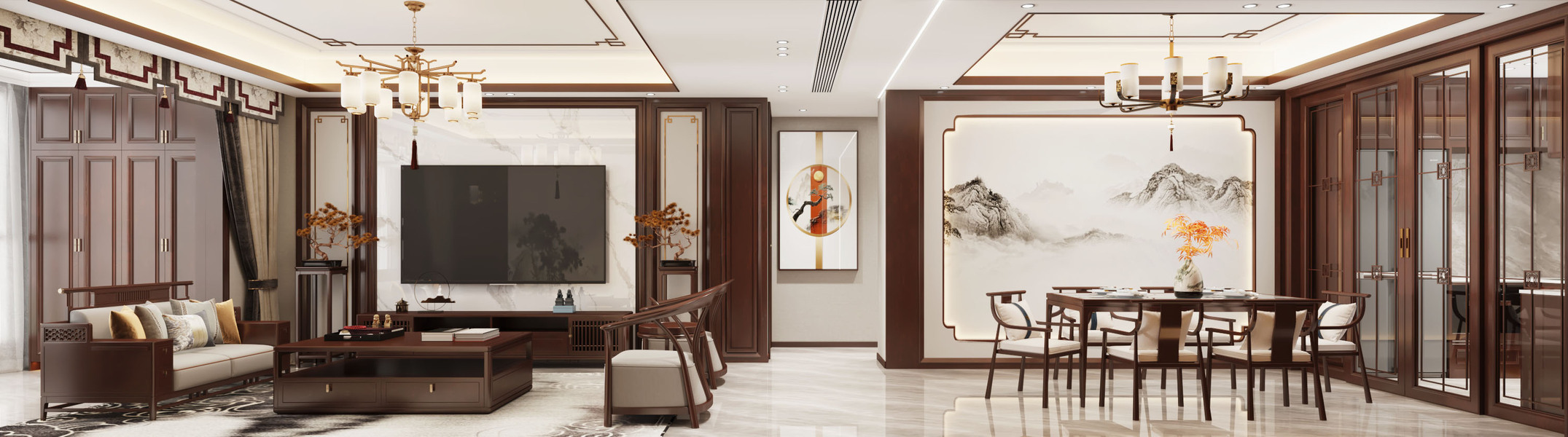 新中风格客餐厅—白龙马效果图