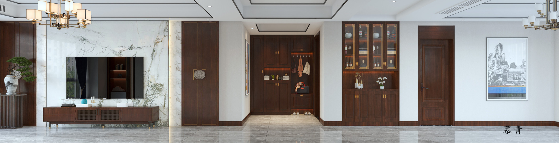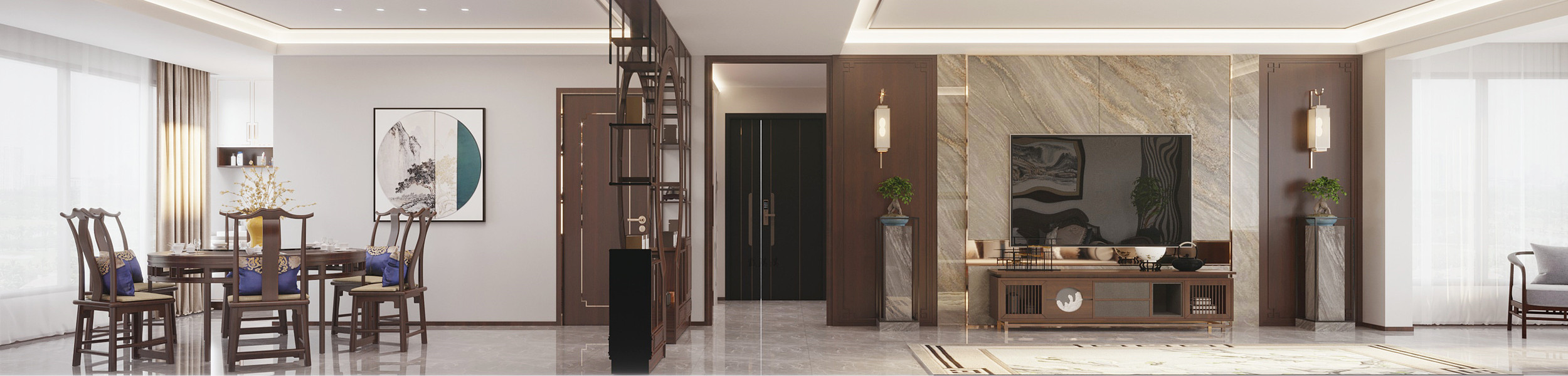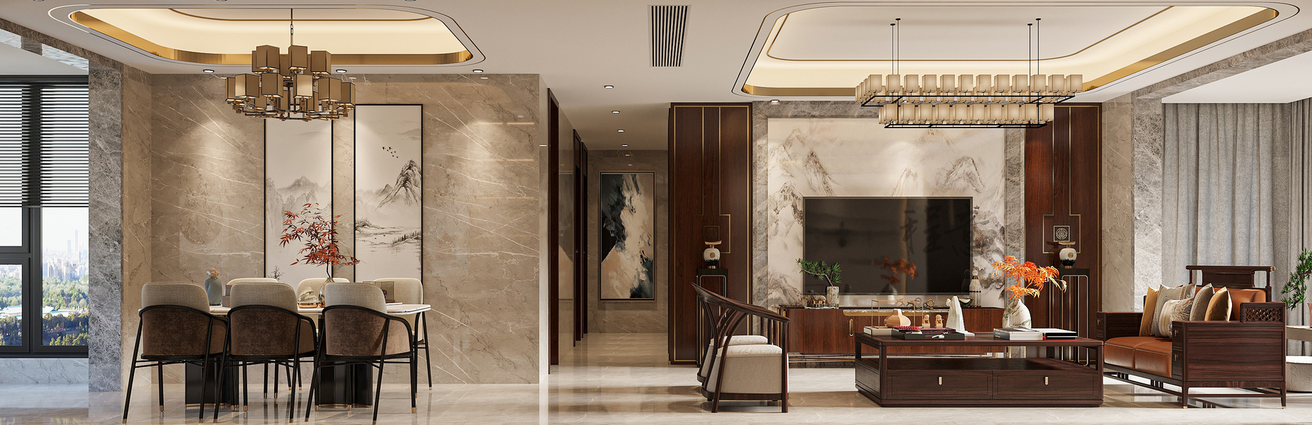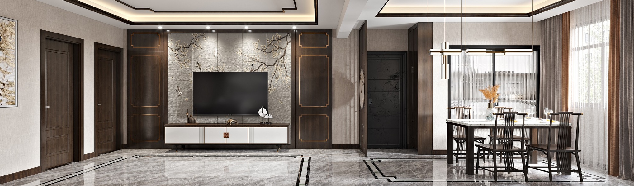 新中风格客餐厅—白龙马效果图