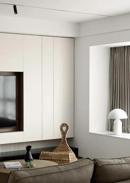 135㎡现代简约风格新房装修,客厅飘窗清净自然