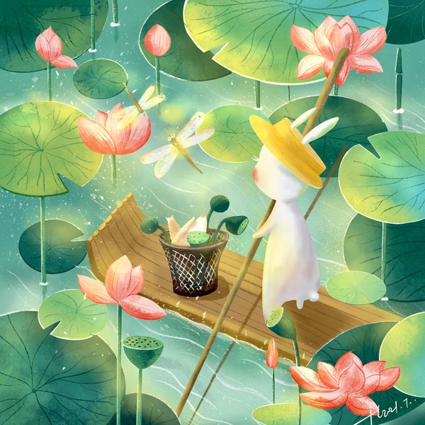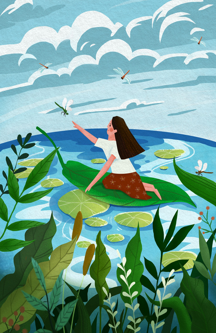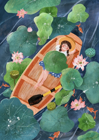 国风插画荷叶