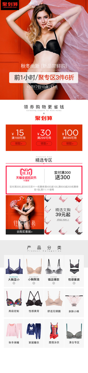 女装店铺天猫淘宝电商电子商务商城首页双11内衣首页 天猫双11承接页