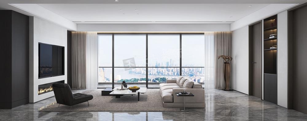 重庆香港置地壹江郡装修案例,现代简约风大平层设计图