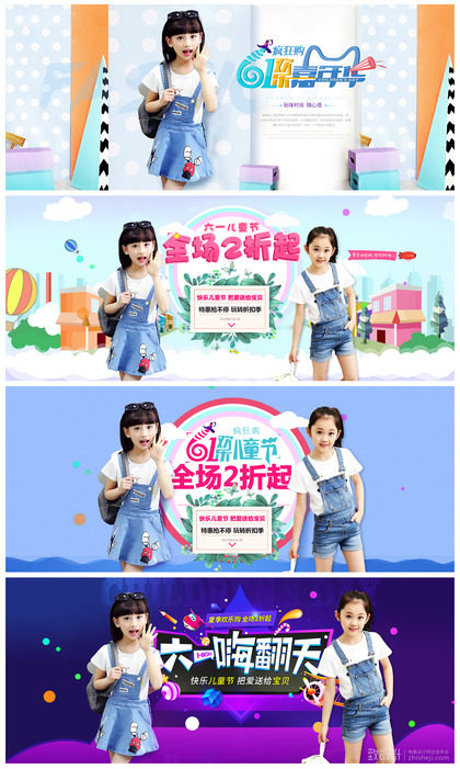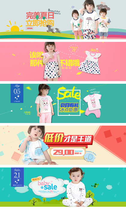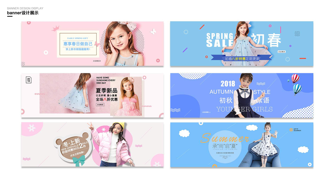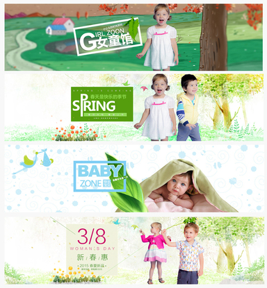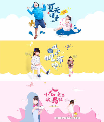 天猫商城儿童品牌旗靓店banner清新可爱设计