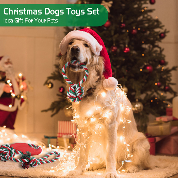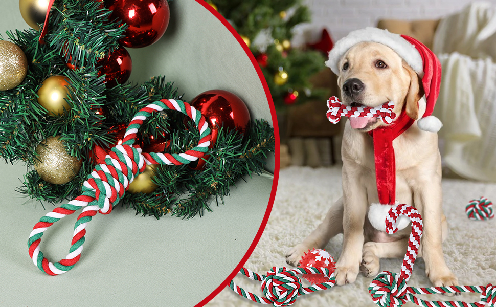9个一套的圣诞款宠物狗狗棉绳玩具套装