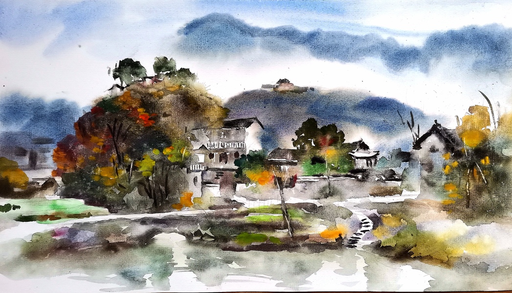 第5期水彩插画全日班安徽査济写生学员作品第二波~