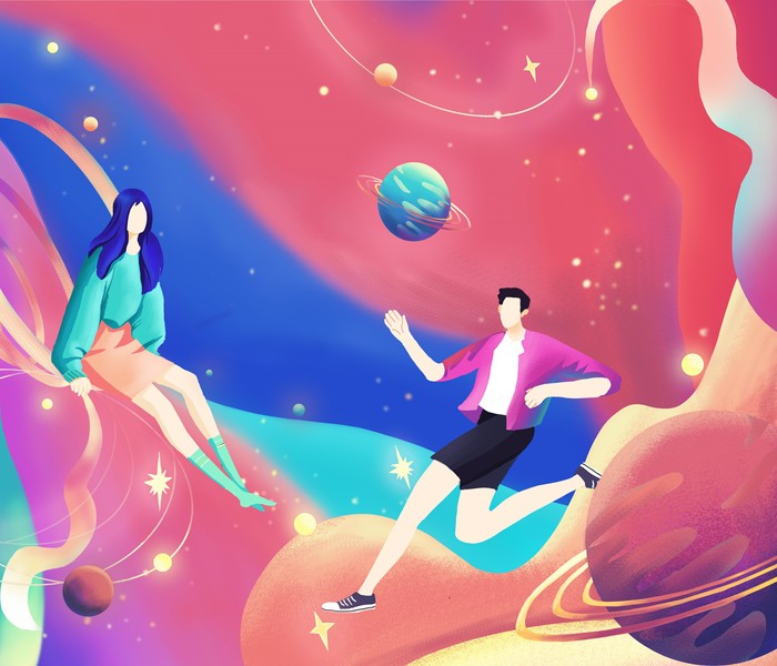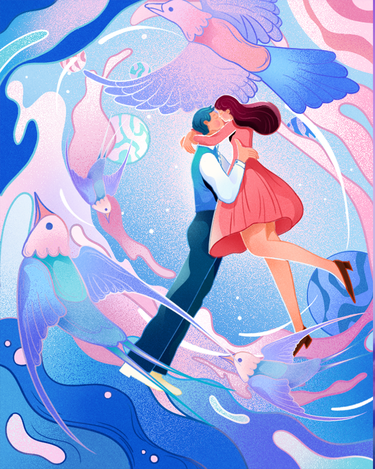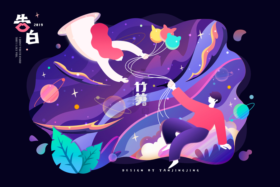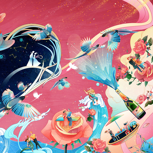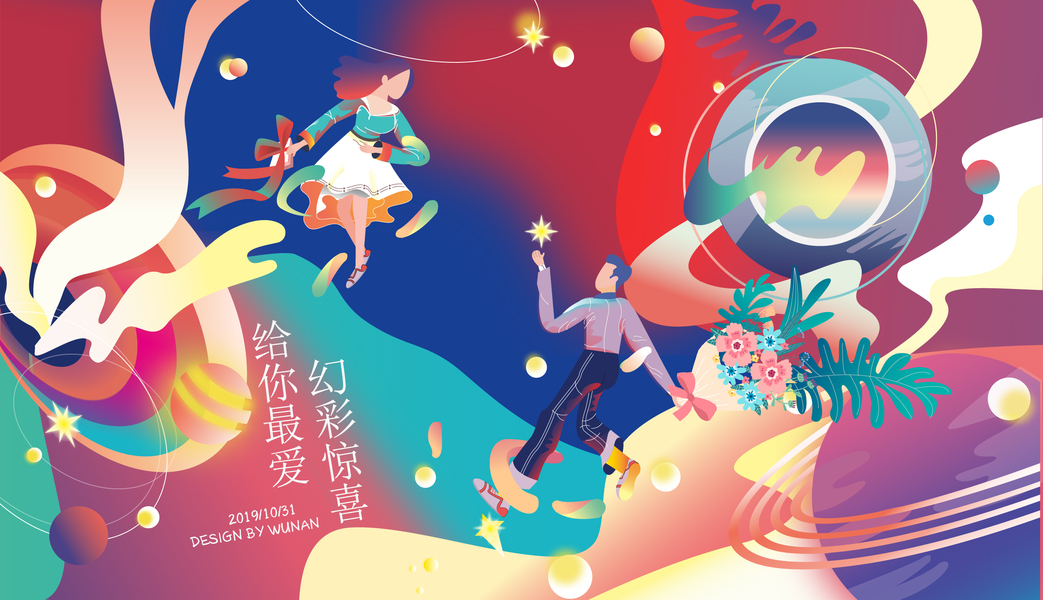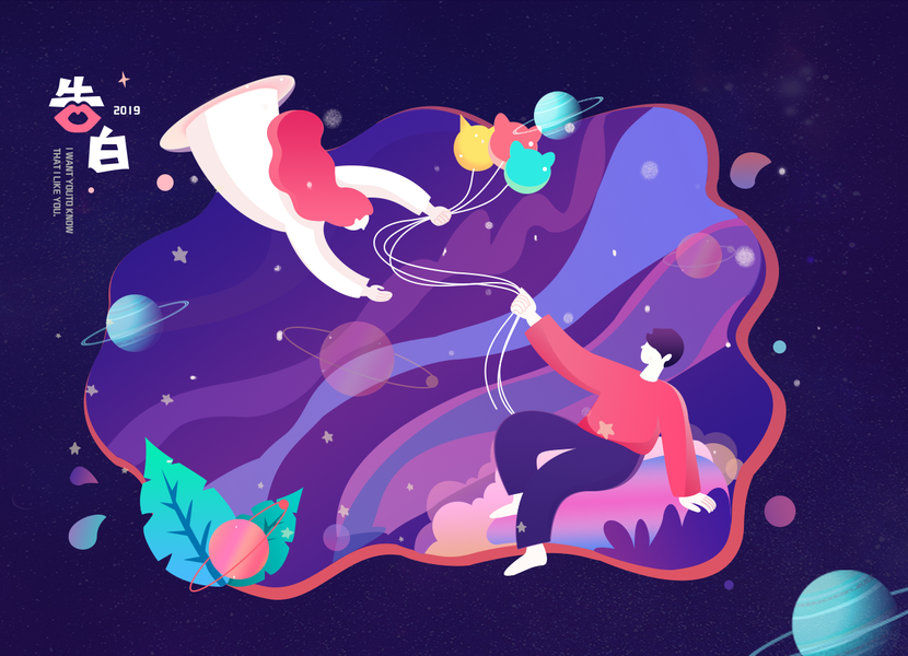 vivo手机 情人节线下商业插画幻彩告白给你最爱
