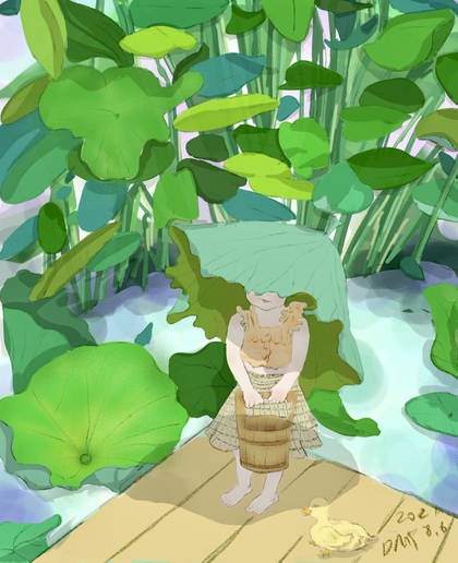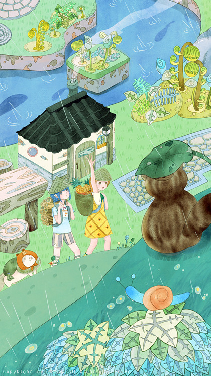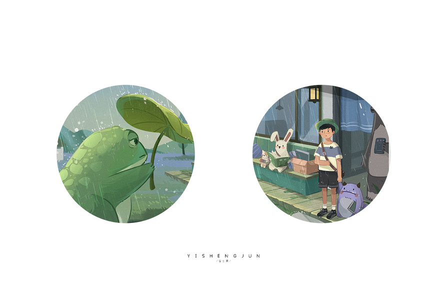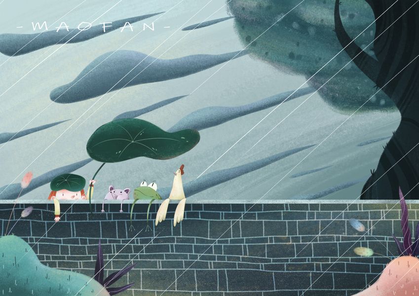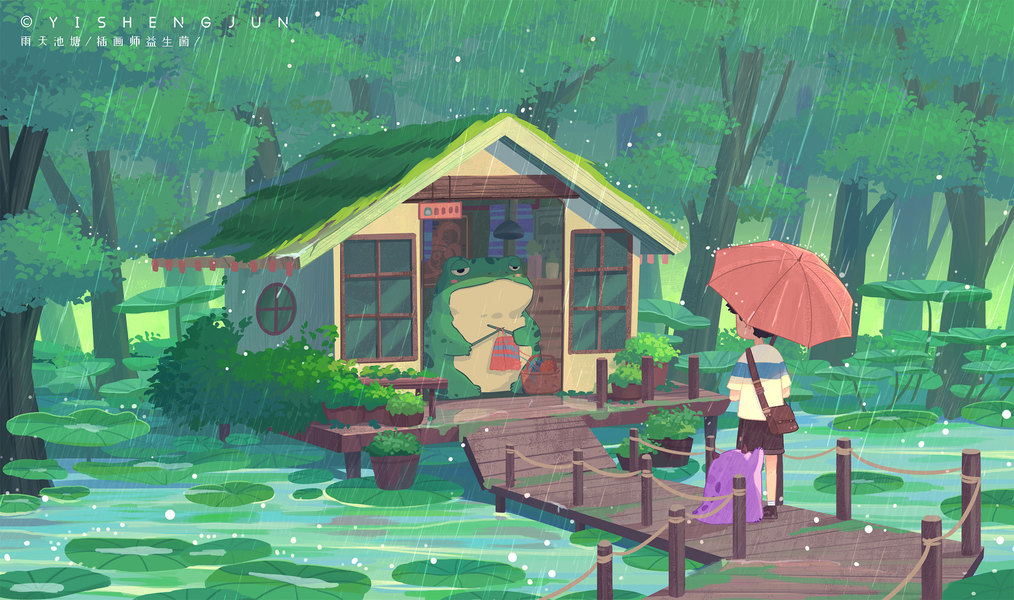 雨天青蛙避雨
