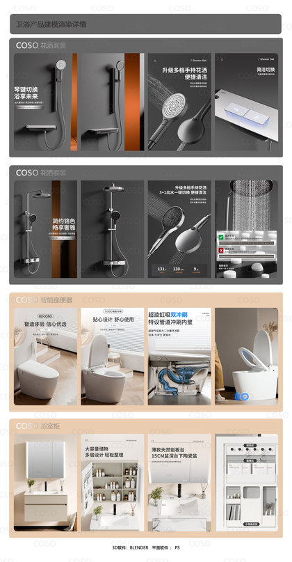 淋浴花洒视觉 | 详情页案例分享 | 场景渲染