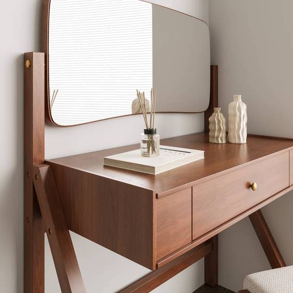 北欧实木床3D设计,胡桃木实木床,家具3D效果图制作