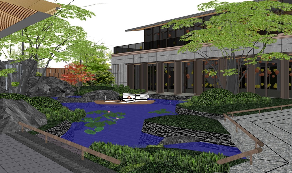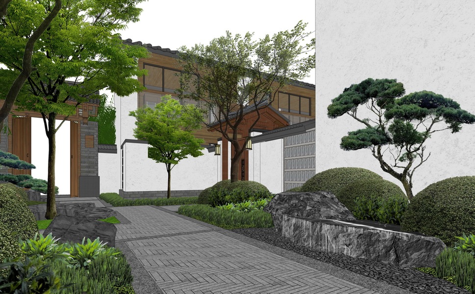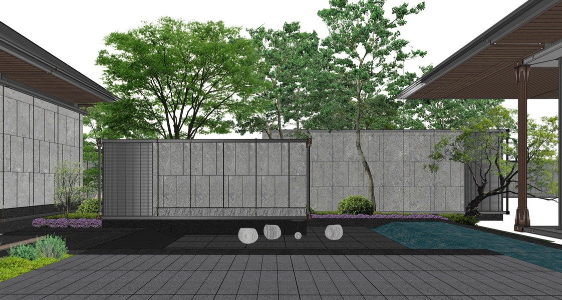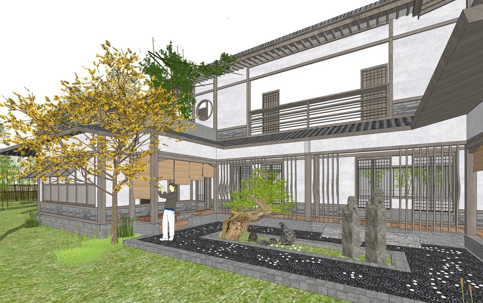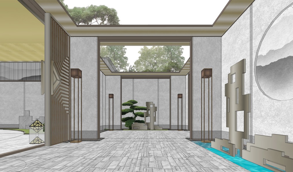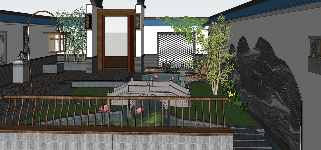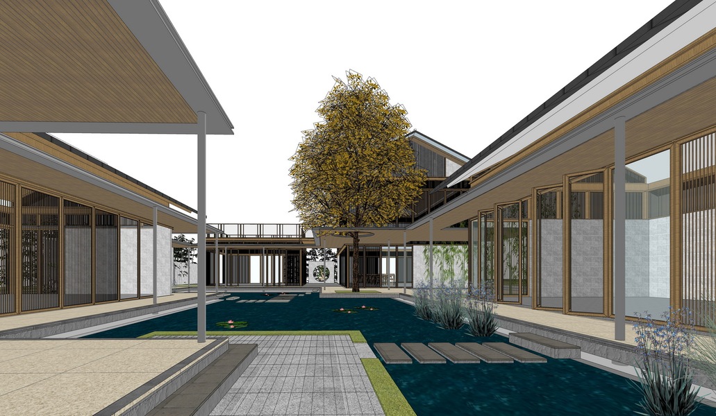 上海青浦保利建发印象青城宋韵示范区景观SU模型下载