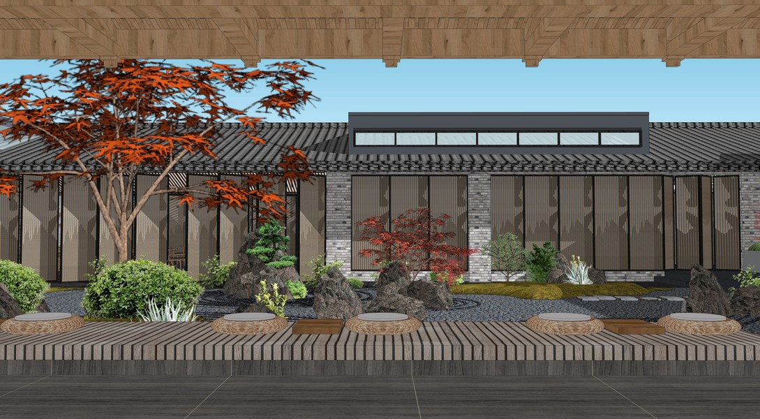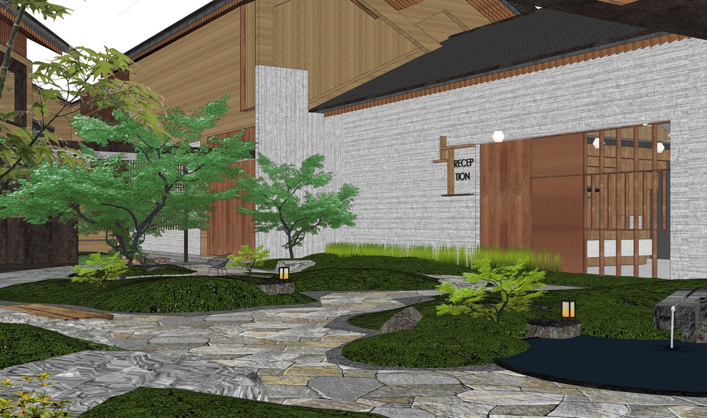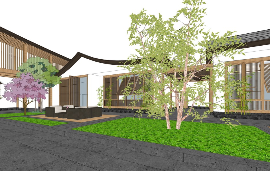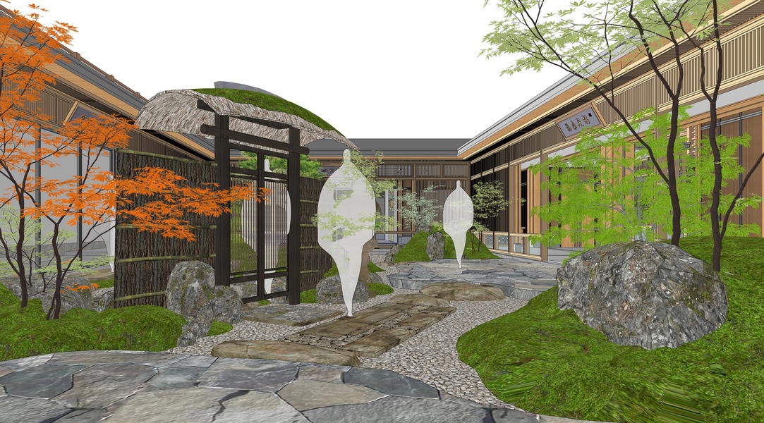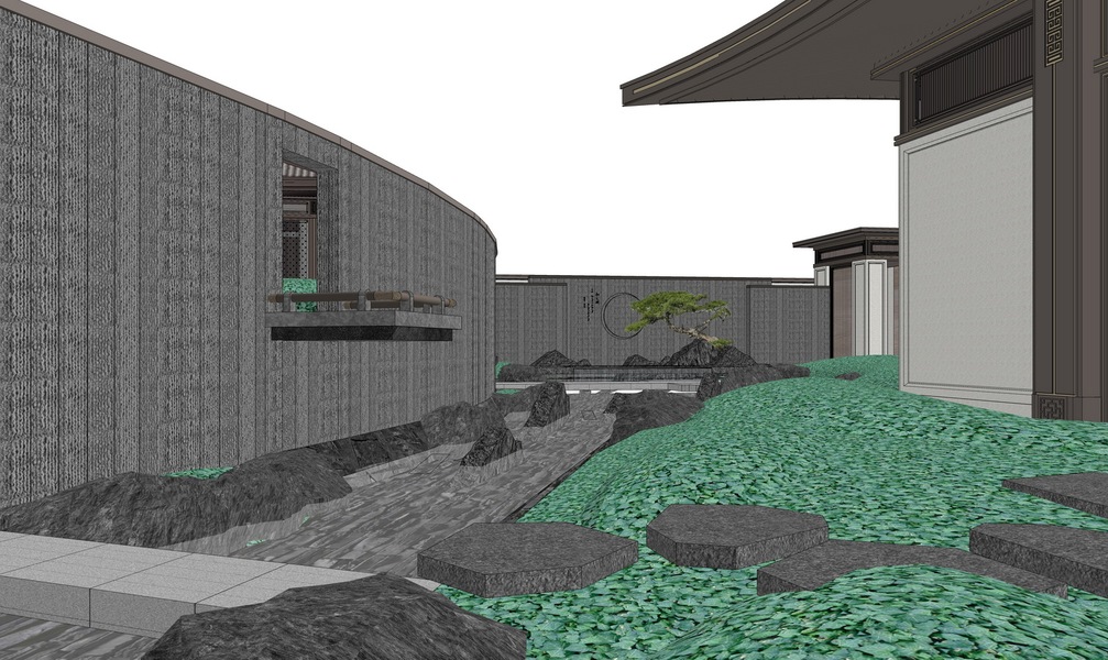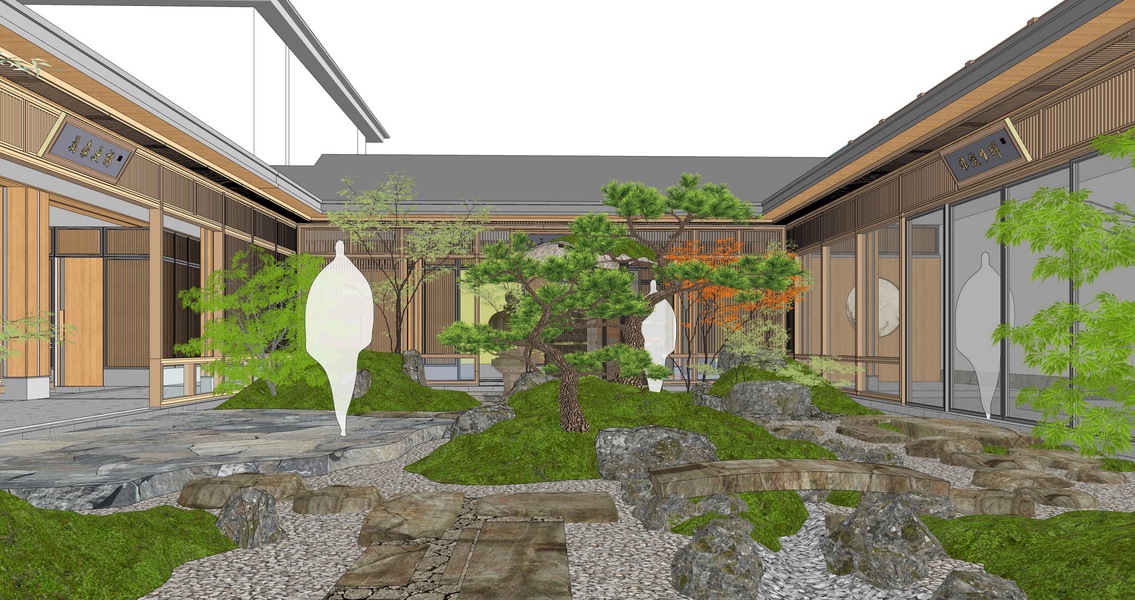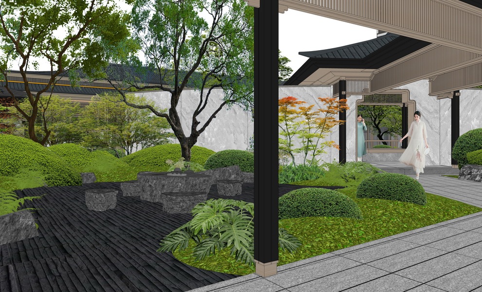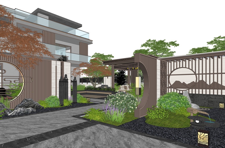 上海青浦保利建发印象青城宋韵示范区景观SU模型下载