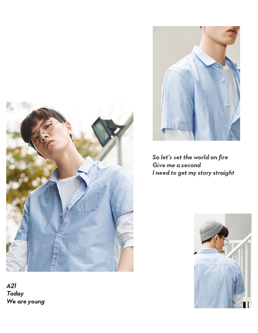 A21 我同你港 纯色翻领短袖衬衫男