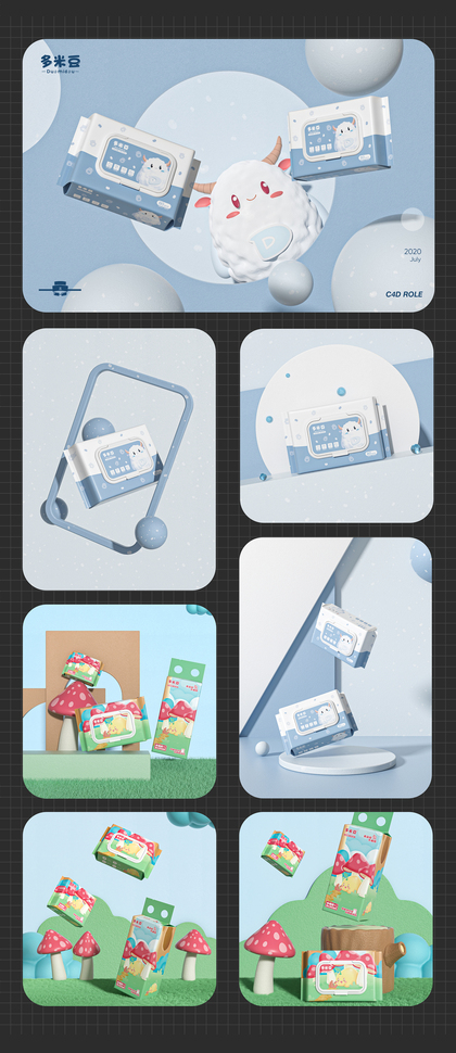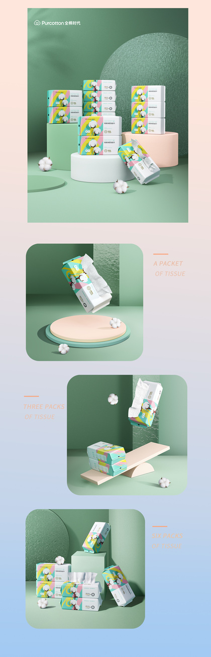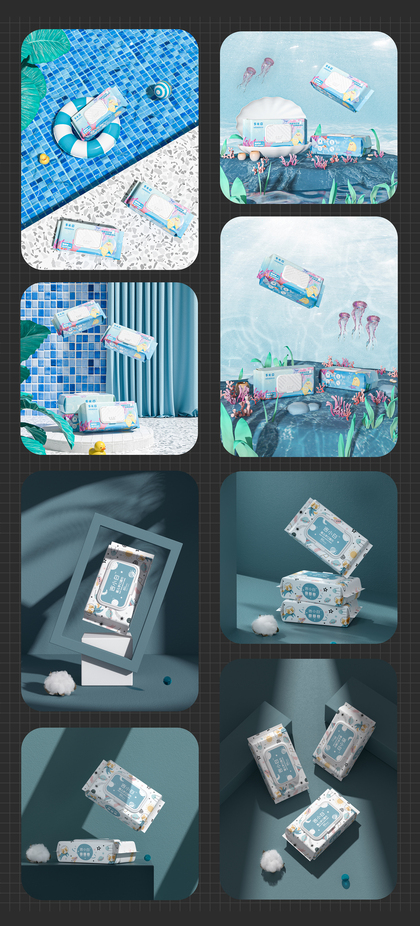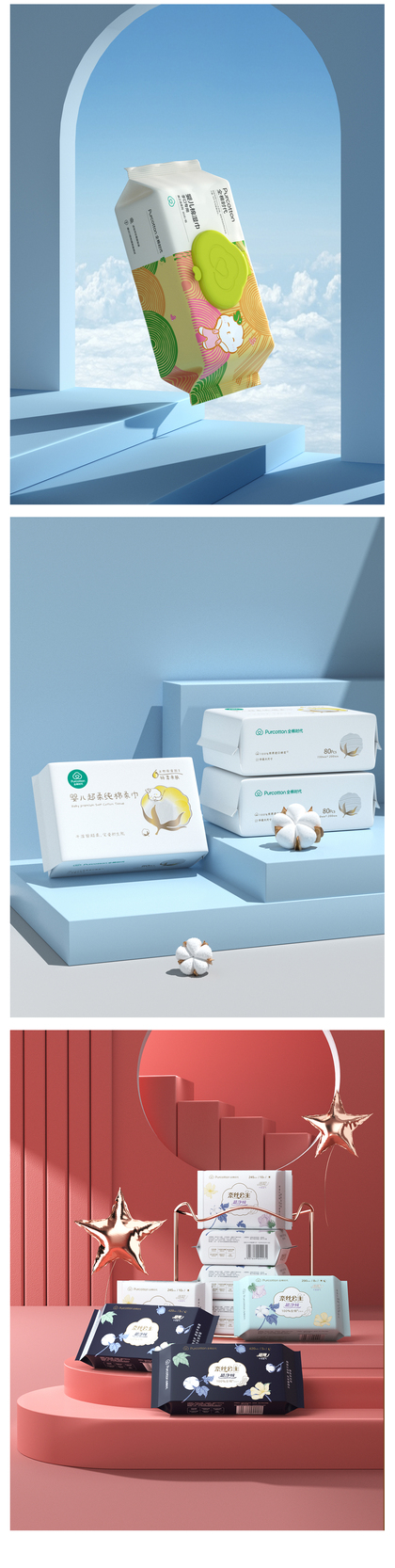 棉柔巾/卫生巾/湿巾/洗衣液等包装2020渲染合集