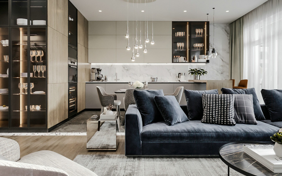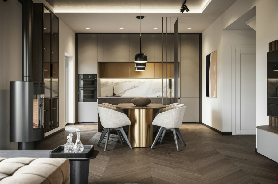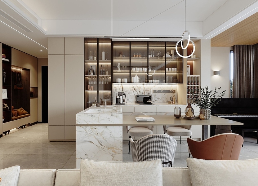 首地江山赋装修,现代轻奢风格设计效果图,渝北天古装饰