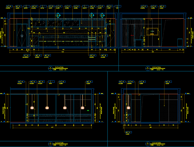 现代主题咖啡馆厅吧 装修设计方案CAD施工图纸