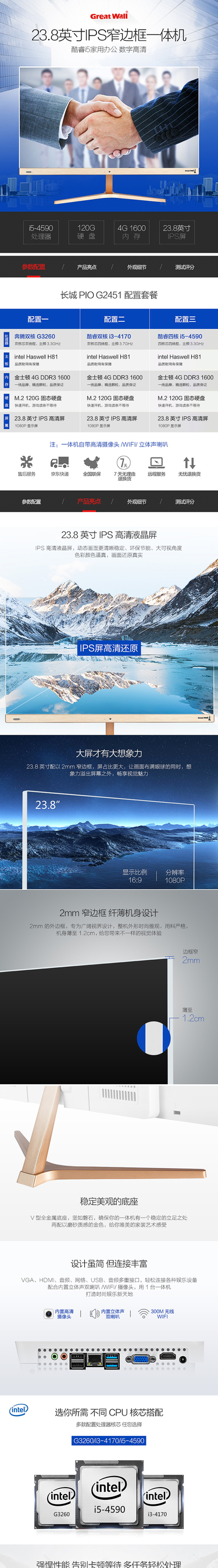 长城PIO G2451一体机电脑 详情页 游戏超薄一体机 家用办公台式电脑整机