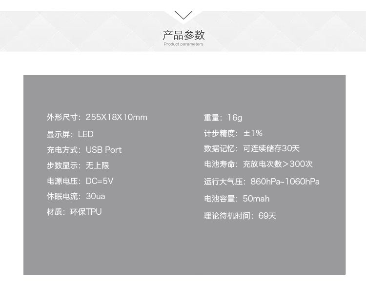 CD2 智能计步运动手环3个闹钟秒表抬手亮灯触摸记忆