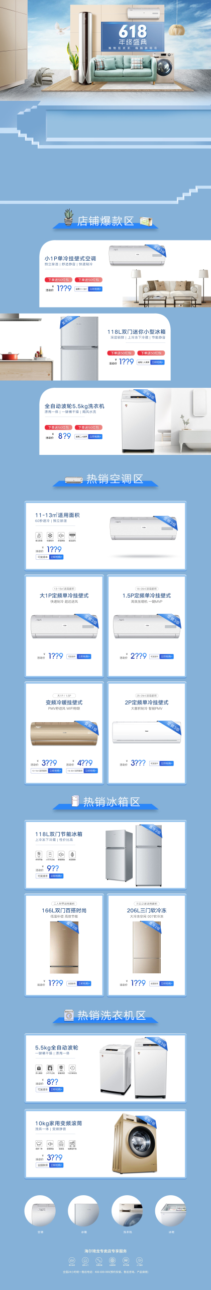 618首页 壁挂式&立柜式空调 双门冰箱 海报 大家电